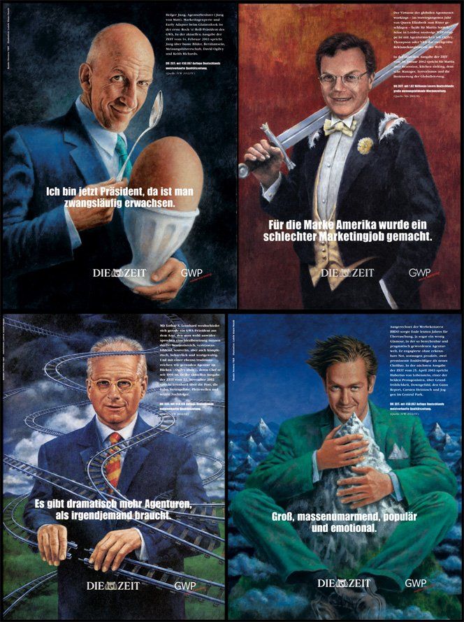Portraitserie für die Werbekampagne der Wochenzeitung DIE ZEIT / Original: Acrylmalerei, 100 x 70 cm, 4 Beispiele