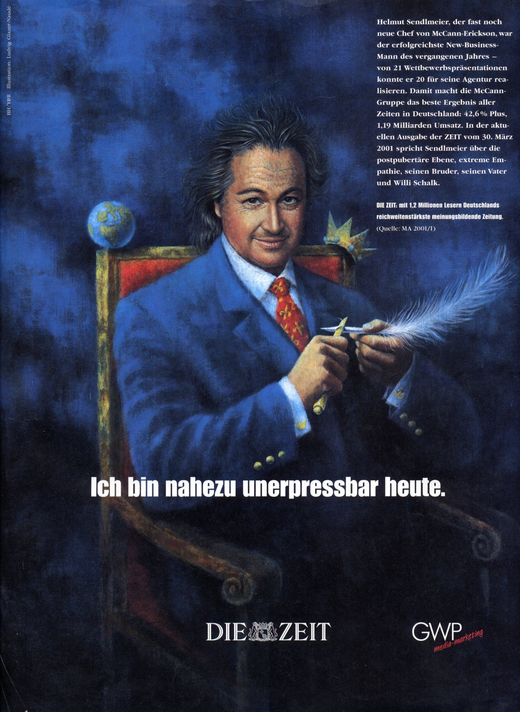 Dr. Peter Haller von der Werbeagentur Serviceplan AG / Idea and illustration for DIE ZEIT advertising campaign / original: acrylic painting on wood, 100 x 70 cm