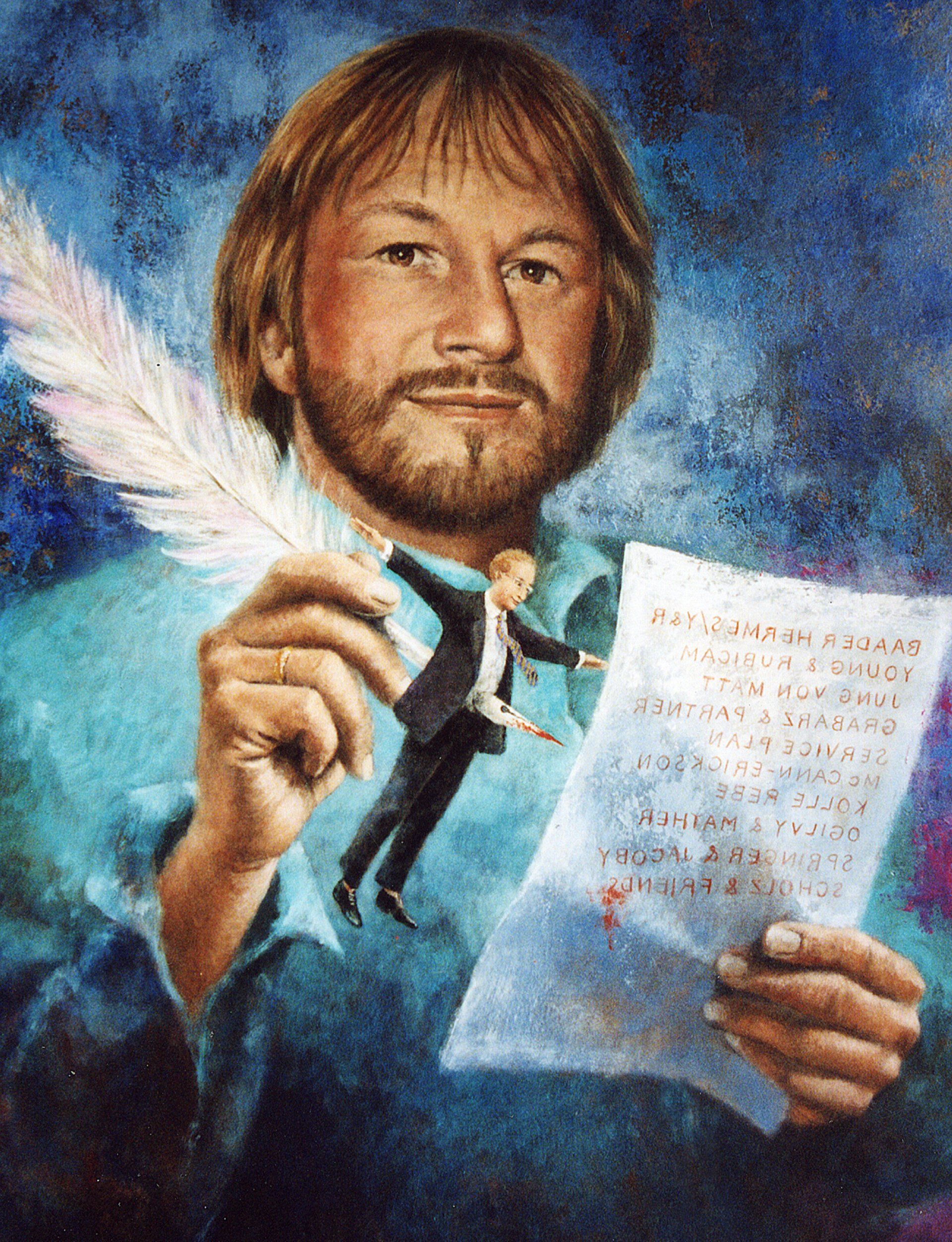 holger jung, owner of the advertising agency jung v. matt / idea and illustration for DIE ZEIT (newspaper) advertising campaignacrylic painting on wood /100 x 70 cm
